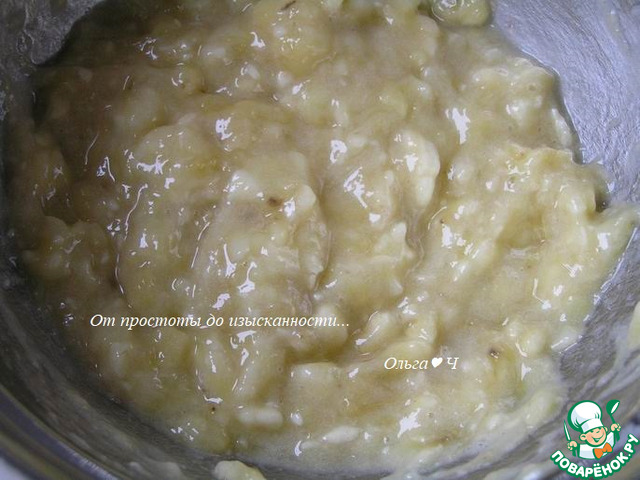 Тем временем бананы разомните вилкой (можно натереть на терке, если хотите).