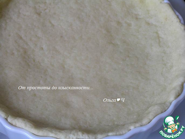 Тесто распределите руками в форме (у меня 18 см), выложите сверху бумагу для выпечки, всыпьте крупу (фасоль, горох) и выпекайте корж при 180*С около 15 минут.