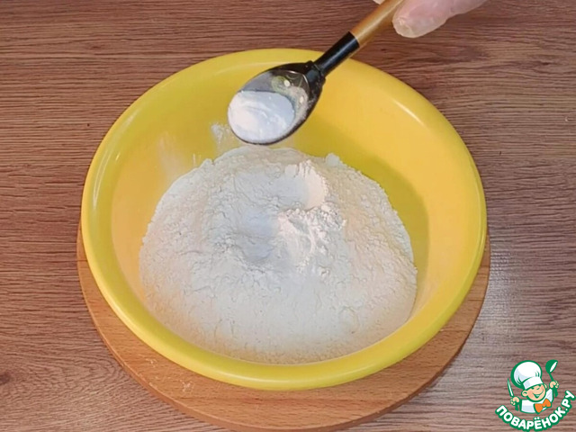 7. Муку смешиваем с разрыхлителем теста и содой.