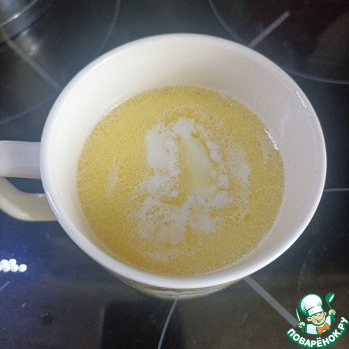 Молоко вместе с маслом прогрейте в микроволновке, чтобы масло растопилось и остудите до комнатной температуры.