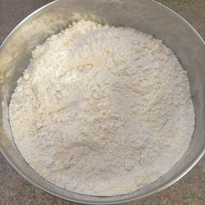 Отдельно просейте оба вида муки. Добавьте соль и дрожжи. Все тщательно перемешайте.