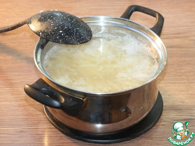 5. Доводим воду до кипения и бланшируем картофель, 2-3 минуты или до полуготовности.