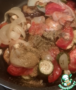 Тоже самое проделать с оставшимися цуккини, помидорами и луком. Овощи должны обгореть и выделить сок. Ведь древняя история этого блюда заключается в том, что пастухи готовили овощи на открытом огне до частичного обгорания.