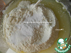 • Всыпьте муку с разрыхлителем, ванилином и солью.
