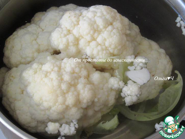 Цветную капусту отварите до полуготовности, затем разберите на соцветия.