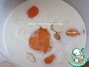 Отдельно смешайте яйца с молоком, посолите.