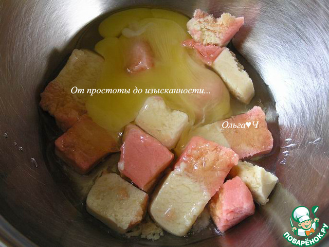 Марципан и яйцо выложите в удобную емкость. У меня были остатки слегка подсохшего разноцветного марципана.