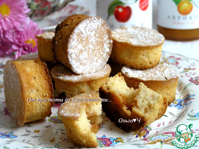 Выпекайте при 180*С около 20 минут, при этом конфитюр окажется в центре пирожного.