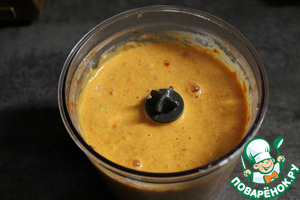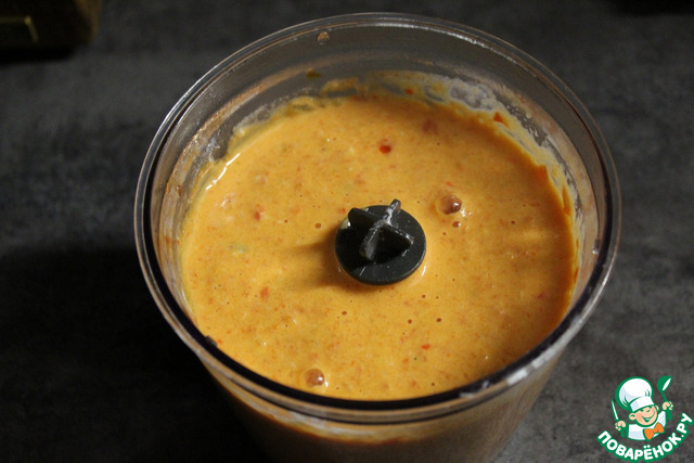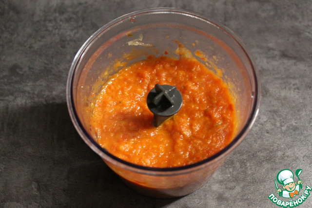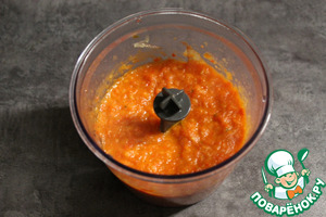 Сварить используемые макаронные изделия, согласно инструкции на упаковке. Достаём овощи из духовки и измельчаем с помощью блендера.