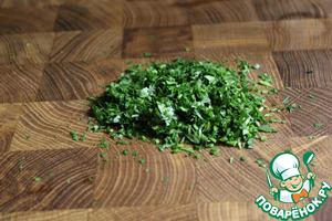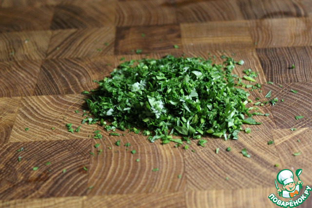 Измельчаем как можно мельче петрушку.