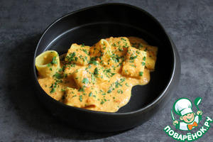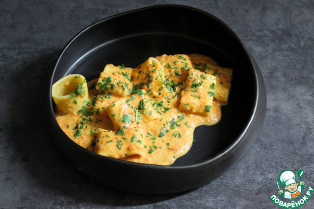 Перемешиваем нашу пасту с соусом и подаем с мелко нарезанной петрушкой.
