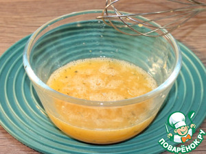 8. Куриные яйца взбиваем с солью. Соль у меня с добавлением пряных, сухих и измельченных трав. Выливаем яичную смесь в миску и хорошо перемешиваем.