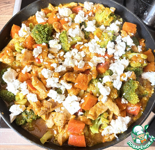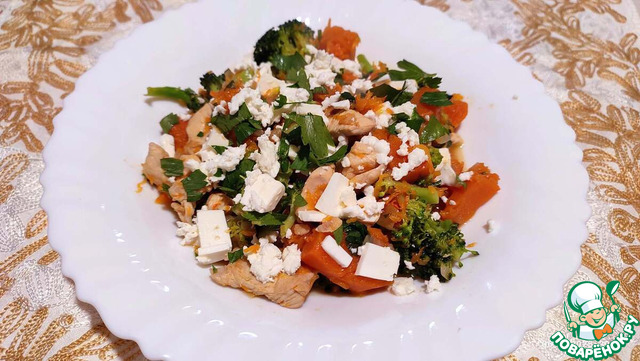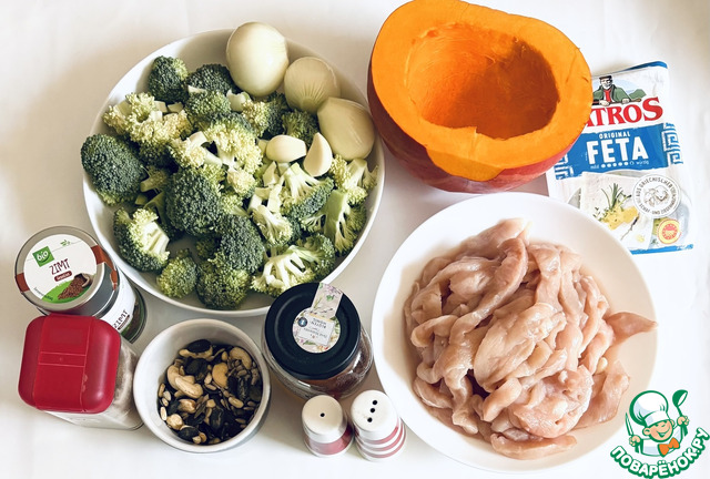 "Унылая пора! Очей очарованье! Приятна мне твоя прощальная краса — Люблю я пышное природы увяданье, В багрец и в золото одетые леса, В их сенях ветра шум и свежее дыханье, И мглой волнистою покрыты небеса, И редкий солнца луч, и первые морозы, И отдаленные седой зимы угрозы" Эти строки А. С. Пушкина пришли мне на ум при приготовлении этого блюда, оно такое же классное, как эти стихи. Рагу из курицы с тыквой и брокколи, дополняется солёным сыром фета и карамельными орешками - как стихи осени!