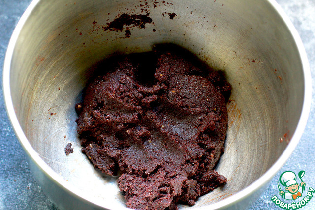 Раскрошите шоколадный бисквит, смелите в крошку в блендере. -