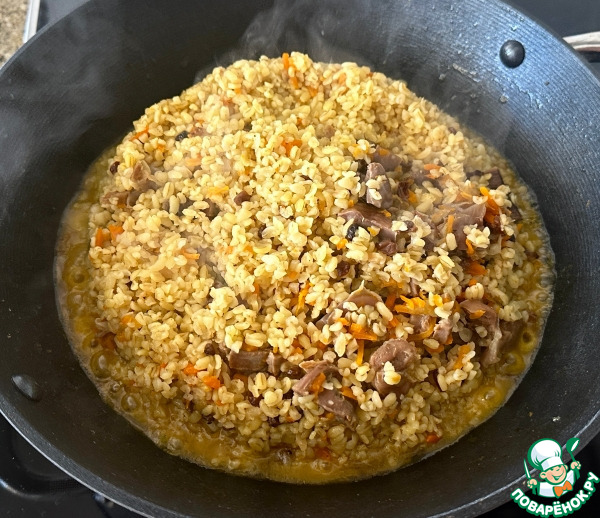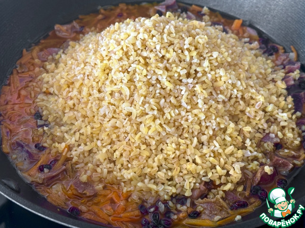 Я, повторюсь, с булгуром работал впервые, поэтому воду добавлял по «рисовой» методе.