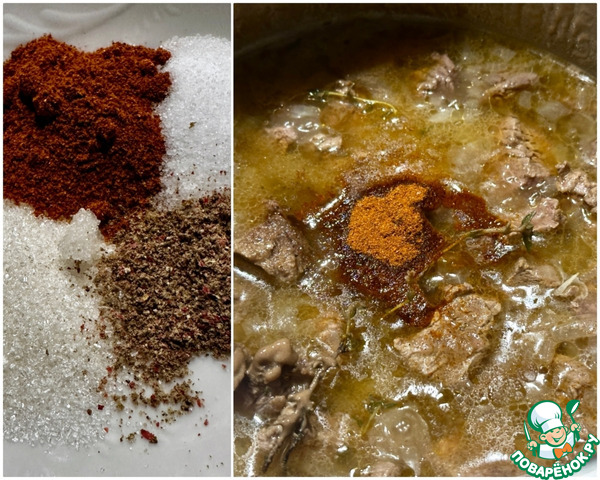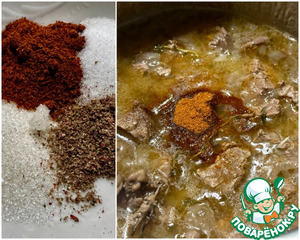 Через сорок минут добавил паприку, соль, сахар. Вот тут можно и даже нужно перемешать.