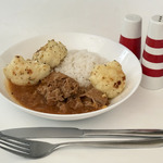 Есть рекомендую ложкой. Чтобы мясо вместе с соусом, значит, в рот попадало. Эстетика - эстетикой, а ложкой удобнее (или сподручнее?).