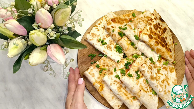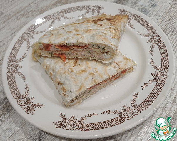 Рецепт «Лаваш с яйцом, помидором и сыром»: