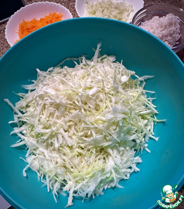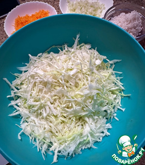 Итак. Был взят кочан капусты. Примерно на полтора кило. И измельчён.