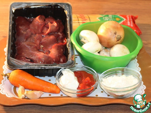 Ингредиенты для «Куриная печень с грибами в соусе»: