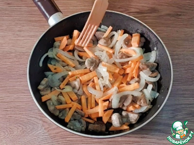 6. Обжариваем грибы под крышкой до выделения воды, минут 5. Затем без крышки, перемешивая, доводим до сухой сковороды.