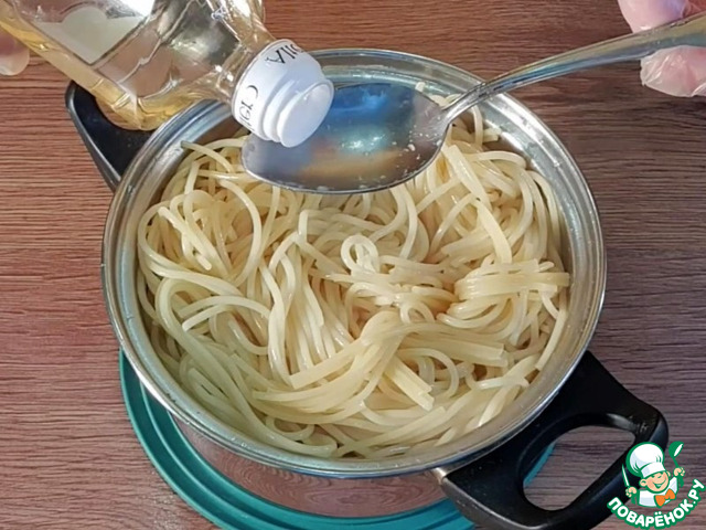 - Масло растительное (3 ст.л. - в зажарку и 3 ст.л. - в спагетти) — 6 ст. л.