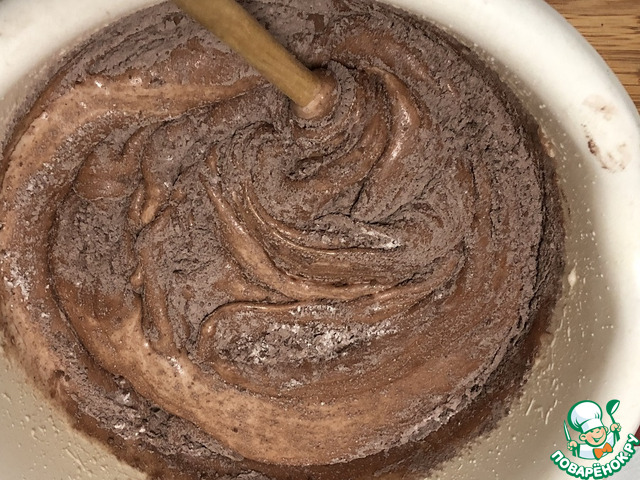 Смешать сухие ингредиенты -мука, разрыхлитель и какао-порошок.