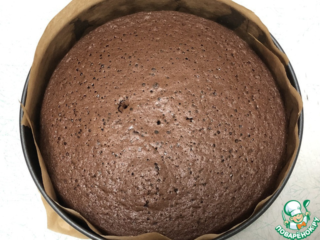 Бисквит разрезать на 2 или 3 части.