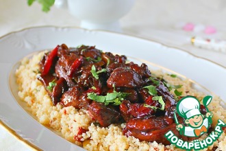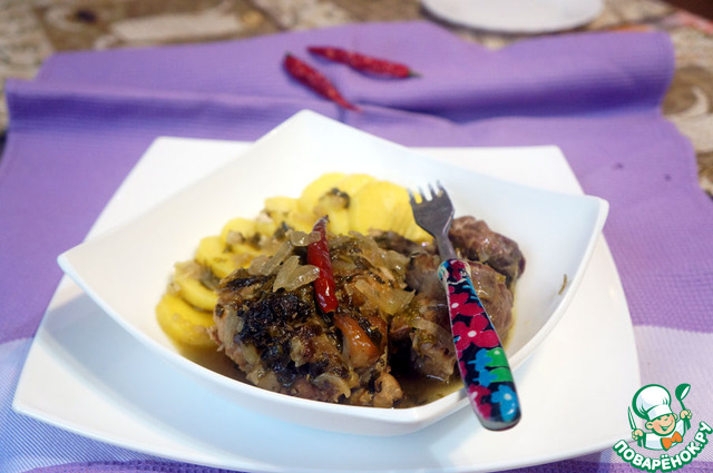 Довести до кипения, убавить нагрев до малого и готовить под крышкой 2,5 часа. Подать с любым гарниром – у меня отварной картофель. Приятного аппетита! |