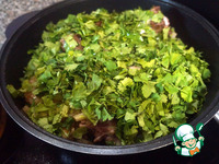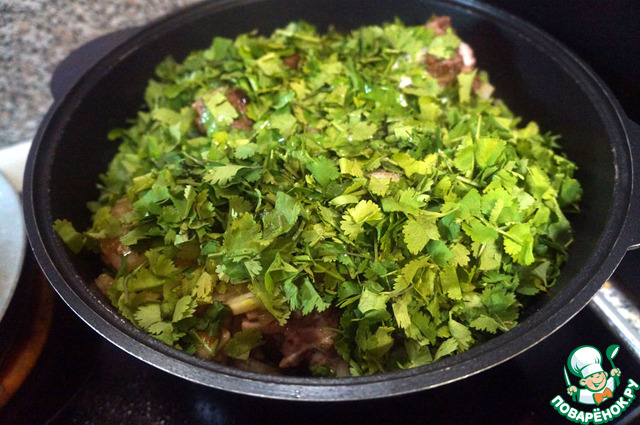 Налить воды (можно бульона, но у меня вода) так, чтобы она почти покрывала содержимое казана. |
