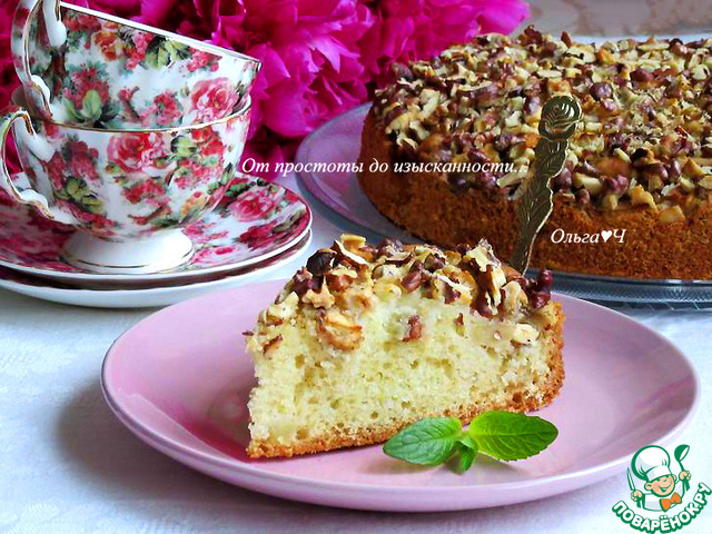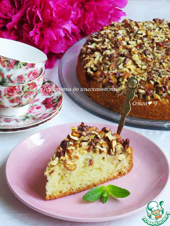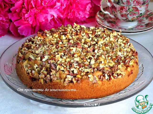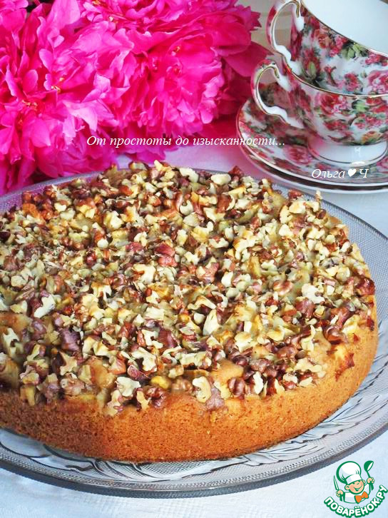 Нежный и воздушный пирог с яблоками и шапочкой из грецких орехов для осеннего чаепития. Очень вкусно, попробуйте!