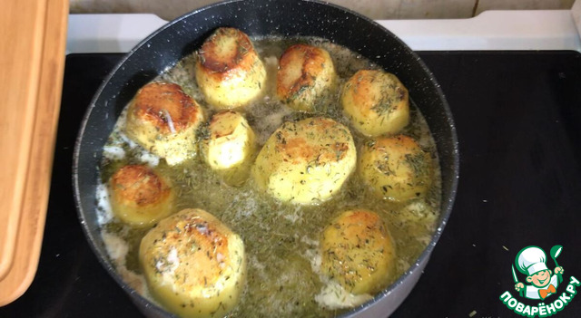 Полейте каждую картофелину получившемся соусом.