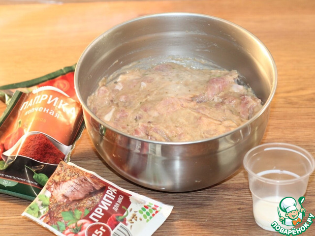 - Приправа (для мяса - в составе кардамон, мускатный орех, перец и другое) — 1 ч. л.