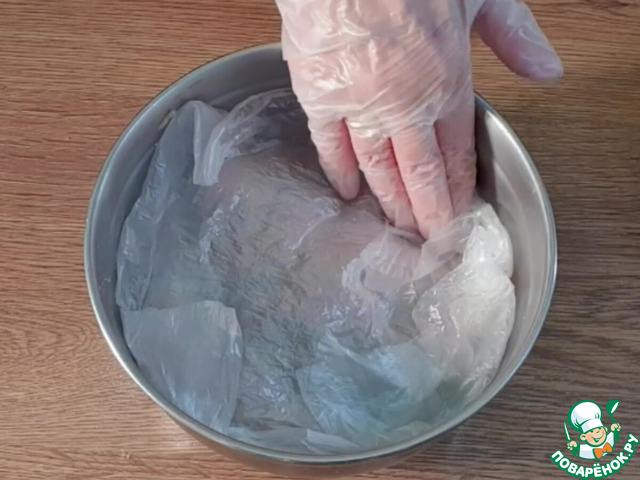 7. Закрыла массу прозрачным пакетом (или пленкой) в контакт и убрала миску в холодильник на сутки.