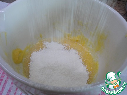 Частями подсеять сухие ингредиенты к масляной смеси, замешивая вначале лопаткой, а затем руками эластичное тесто.
