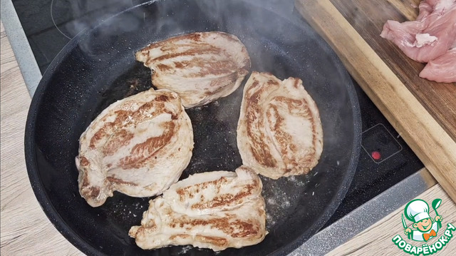 Обжарить мясо на сильном огне с обеих сторон по несколько минут.