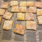Переложите заготовки на противень, застеленный бумагой для выпечки. Выпекайте при 200*С около 20 минут.