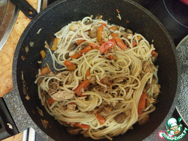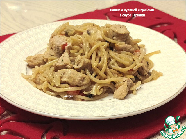 Рецепт «Лапша с курицей и грибами в соусе Терияки»:
