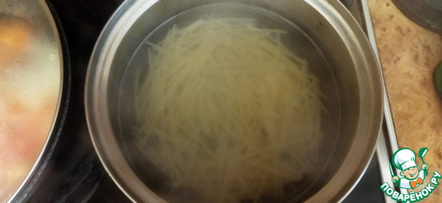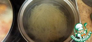 Поставить варится лапшу, ее нужно немного недоварить. Если она варится 6 минут, отваривать минут 5.