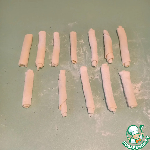 Рецепт «Печенье из дрожжевого теста «Сахарные трубочки»»: