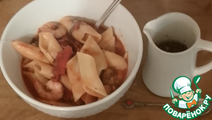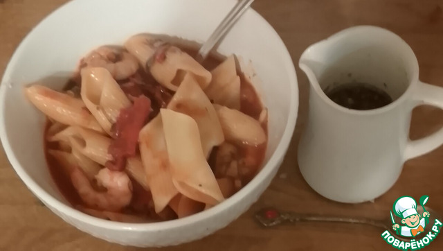 Рецепт «Паста с креветками, помидорами и орехами»: