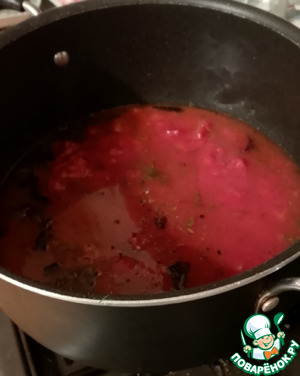 Добавьте томаты, воду, перец черный по вкусу. и 1,75 чайных ложек соли. Довести до кипения, затем уменьшите огонь и тушите под крышкой 25 минут до загустения соуса.