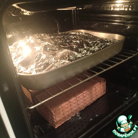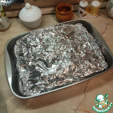 Сверху накрыть вторым куском фольги, завернув концы внутрь, чтобы нижняя фольга была хорошо закручена.