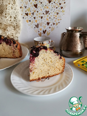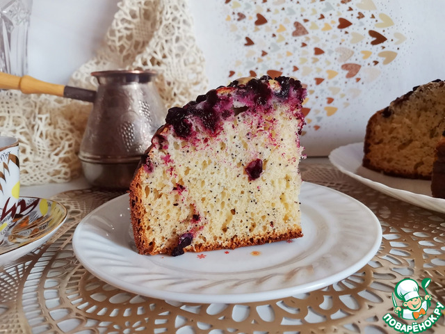 Молочная сладость и невесомость бисквита удачно сочетаются с хрустящими маковыми крапинками, ароматом лета и неповторимой кислинкой чёрной смородины.