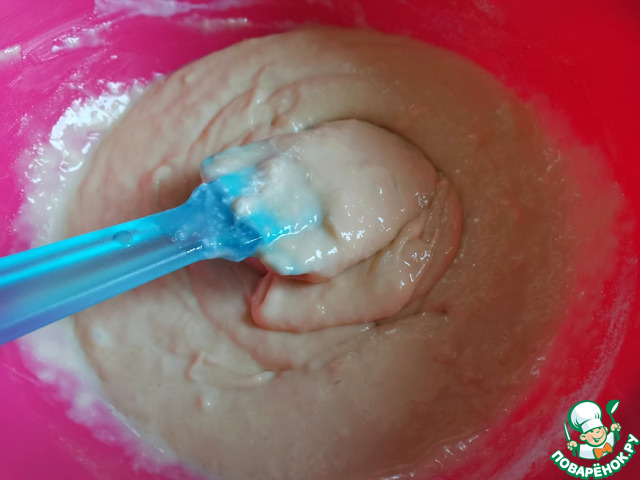 Перемешать. Вот такое по консистенции получается тесто, не крутое и не жидкое.