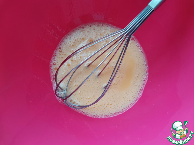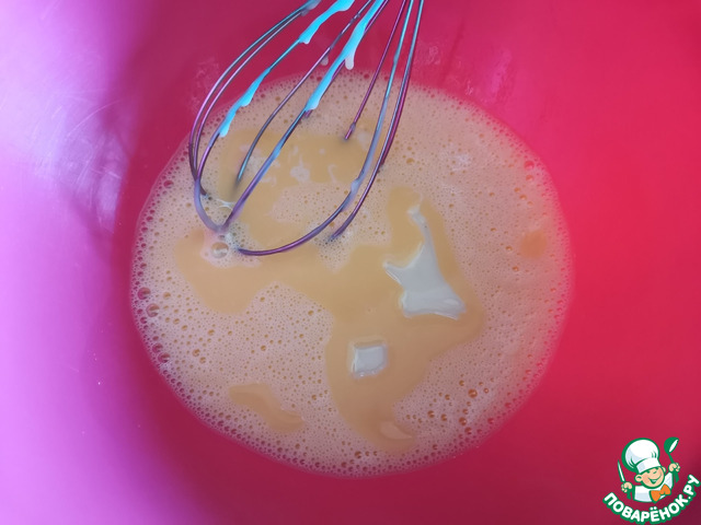 Хорошо взболтать венчиком яйца, соль и сгущёнку.