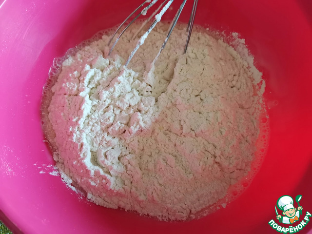 Затем просеять через сито муку и разрыхлитель.