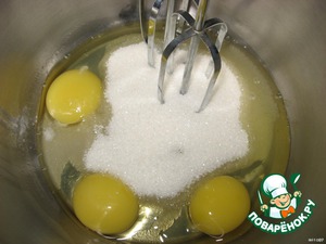 Взбиваем 3 яйца с сахаром и ванилином. -