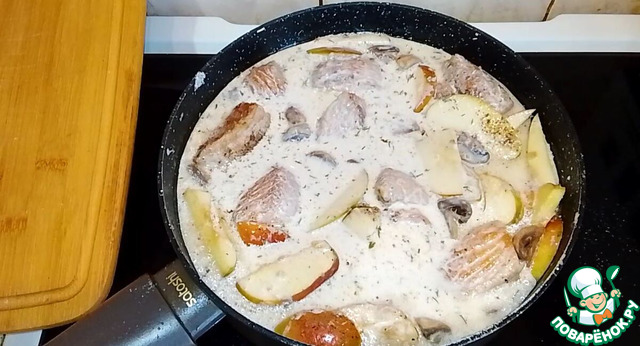 Нежная, ароматная свинина с яблоками и грибами в сливочном соусе удивит ваших близких новым вкусом. Откройте для себя изысканный вкус домашней кухни с моим рецептом свинины с яблоками и грибами в сливочном соусе! Это блюдо идеально сочетает сочную свинину, свежие яблоки и ароматные грибы, все в насыщенном сливочном соусе, который придает ему особую нежность и богатство вкуса. Нежнейшее мясо свинины тушится на сковороде, сохраняя сочность и аромат каждого кусочка. Грибы добавляют глубины вкуса, делая блюдо особенно интересным. Яблоки придают свежесть и сладость, идеально дополняя мясной вкус. Сливочный соус мягко объединяет ингредиенты, создавая неповторимую гармонию вкусов.