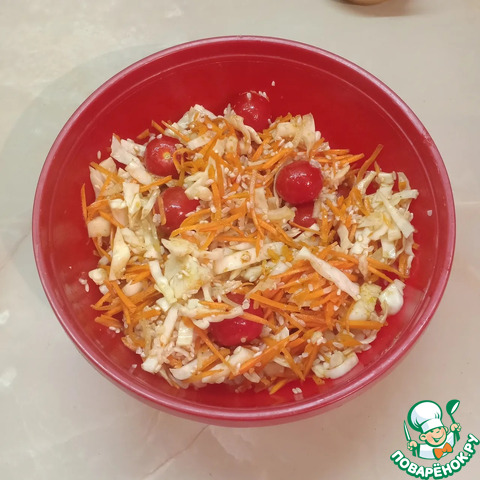 Капусту нашинковать средними полосками, шириной 5мм.